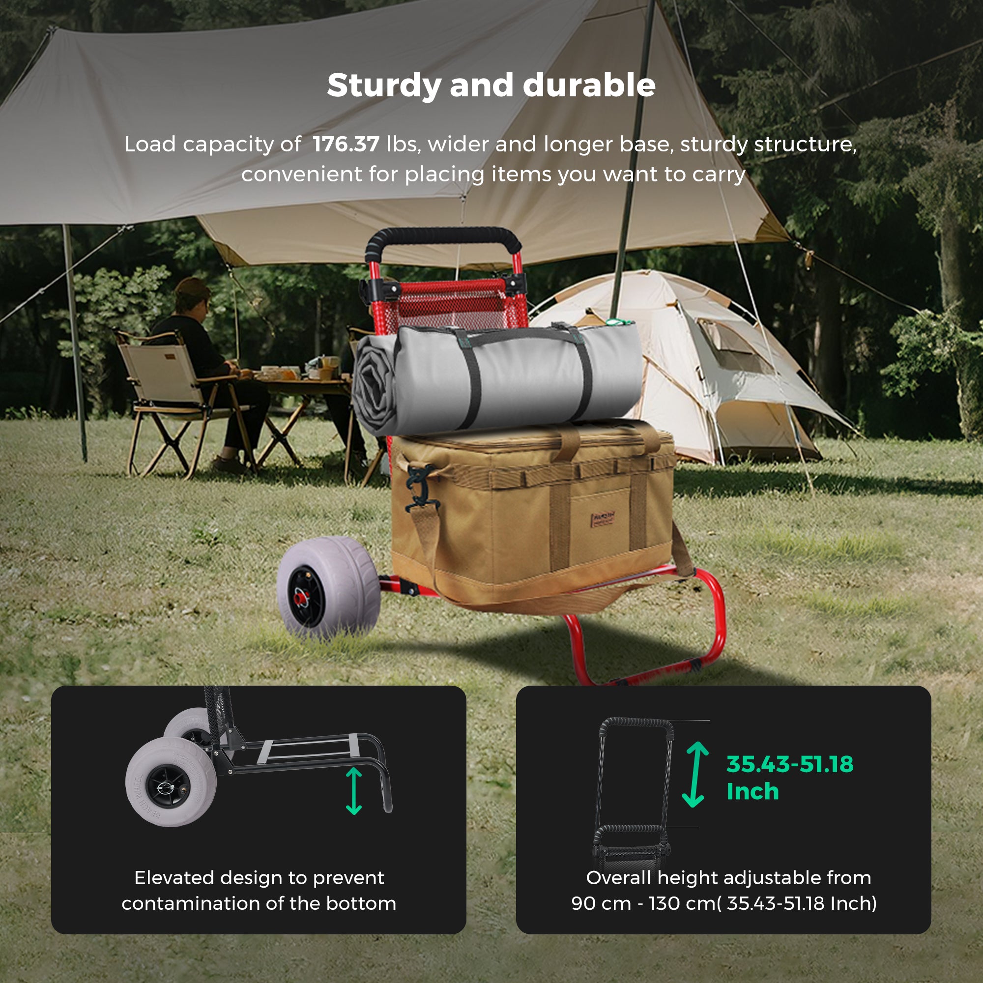 - 【Raised Base Design】 – The base is raised by 1.18 inches, so it won't get stuck when walking on sand. It can also be used as a temporary table during camping, making it a multi-functional item!